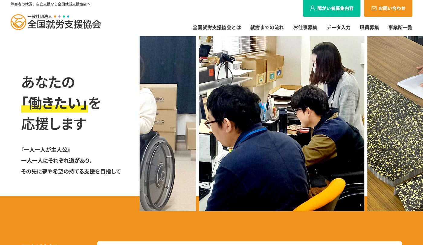 全国就労支援協会は、官公庁や地方自治体から受託する各種事務処理業務(データ入力、アンケート集計、書類スキャン、封入封緘など)を中心に、BPO業務全般を展開しております。 |